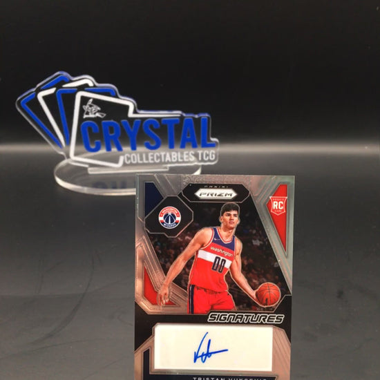 Add a sleek and highly collectible piece to your basketball card lineup with this Tristan Vukčević Prizm Signatures Rookie Card from Panini Prizm. Featuring a clean on-card autograph and crisp Prizm design, this rookie auto stands out for both fans and serious collectors.